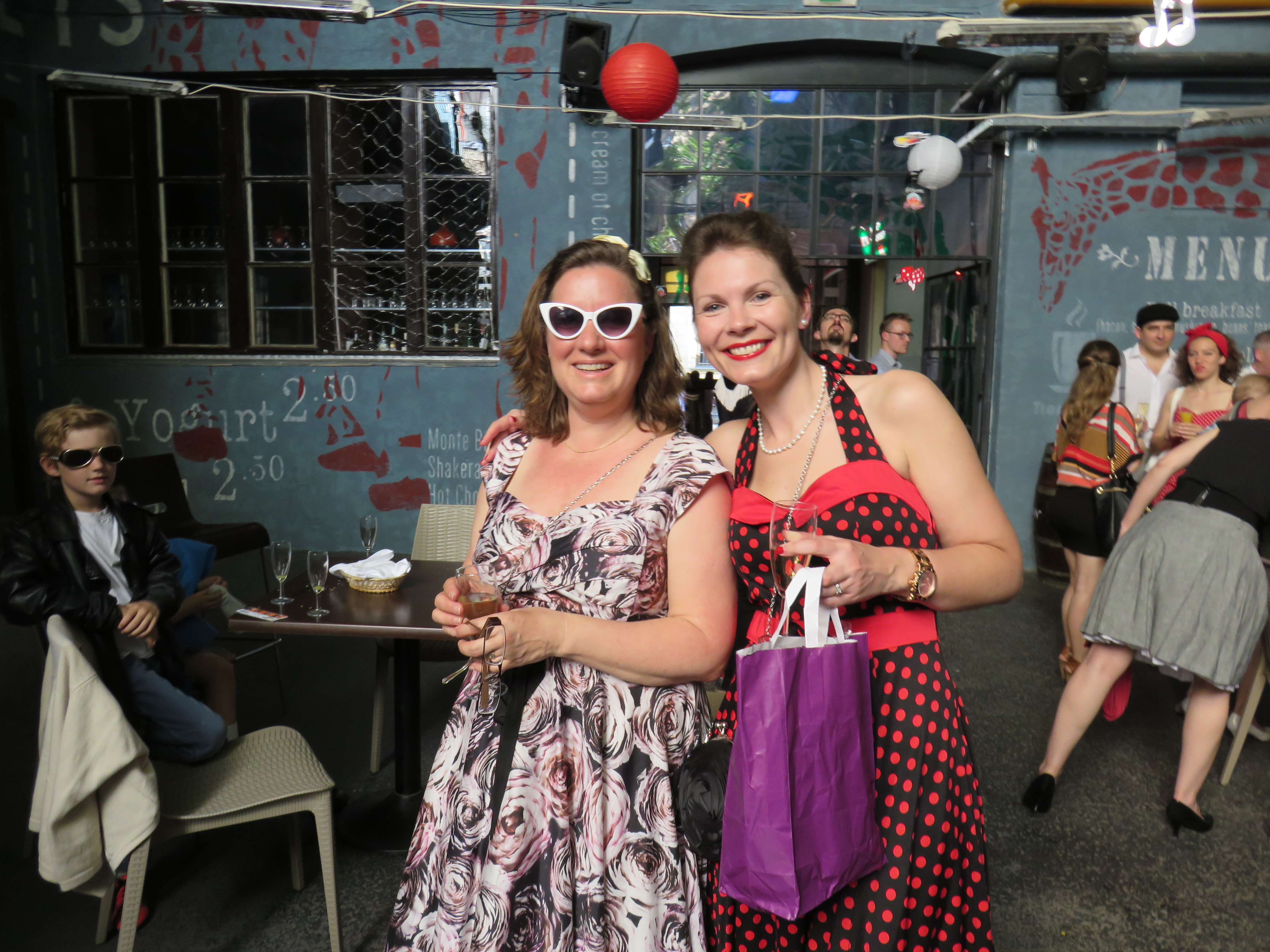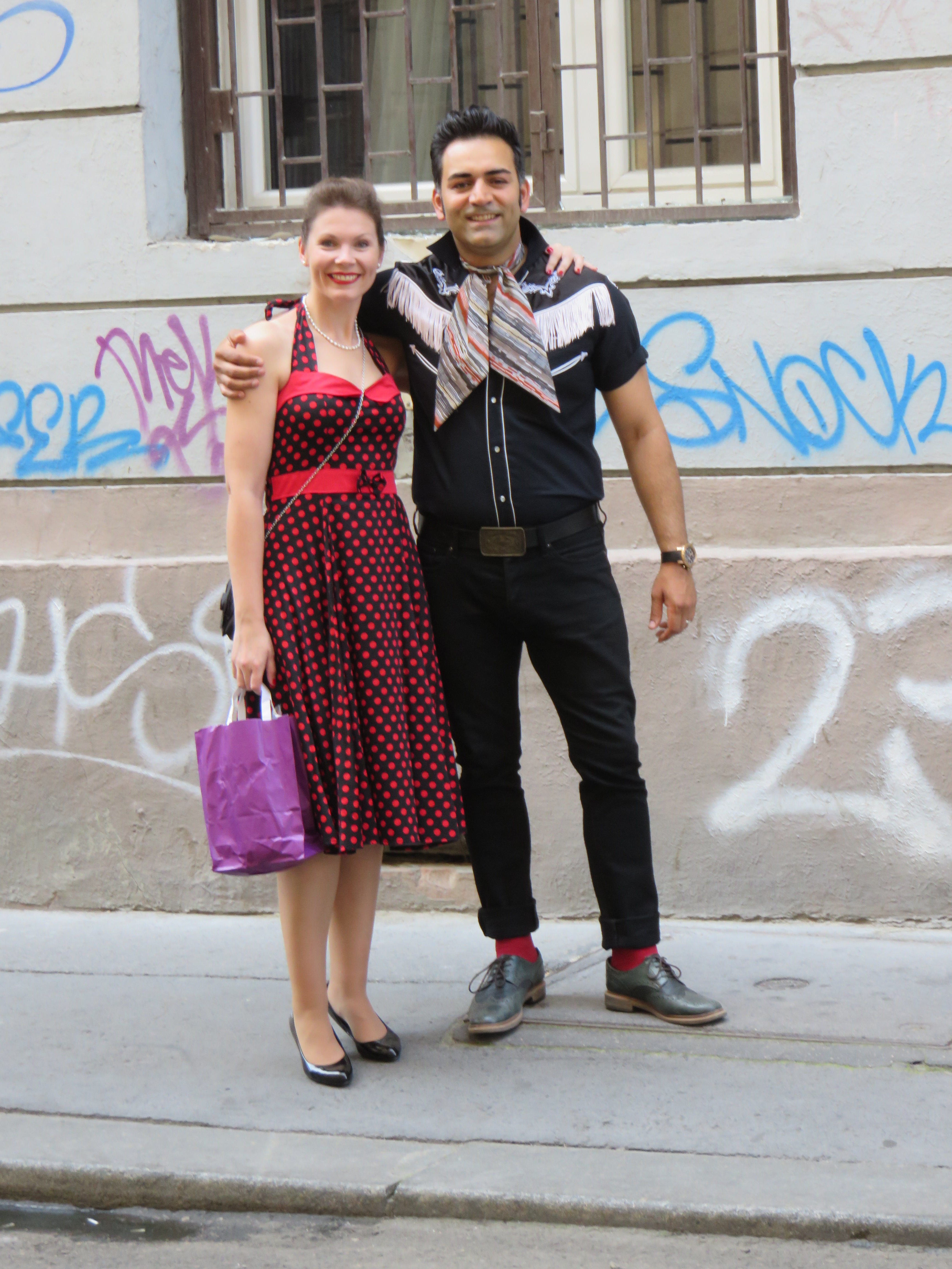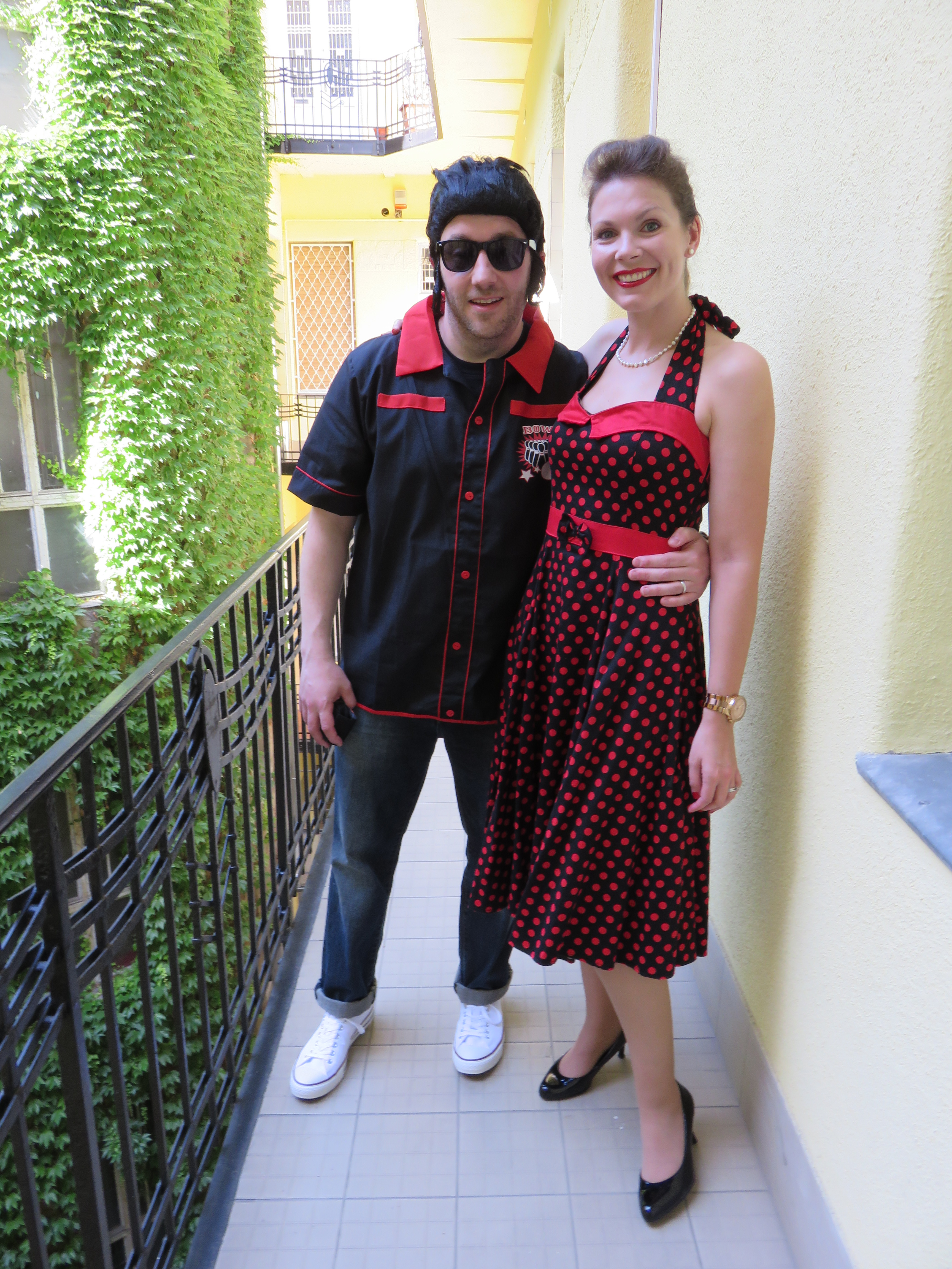 After more meandering, we looped back in the direction of our apartment to get ready for the wedding, which had a 1950s theme. Huge thanks to my lovely neighbours who lent me a super 1950s dress. We had great fun getting ready and set off for the venue which was a 2 minute walk round the corner in a former school called Iskola.