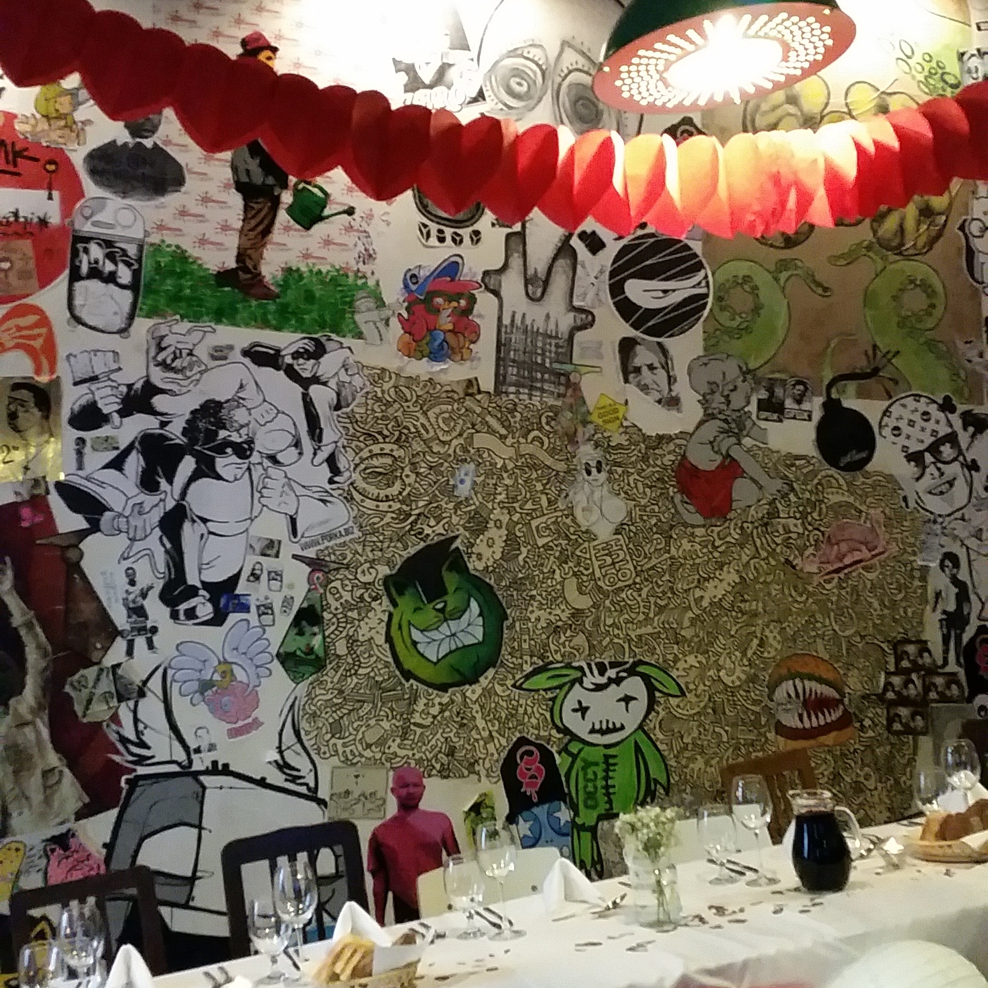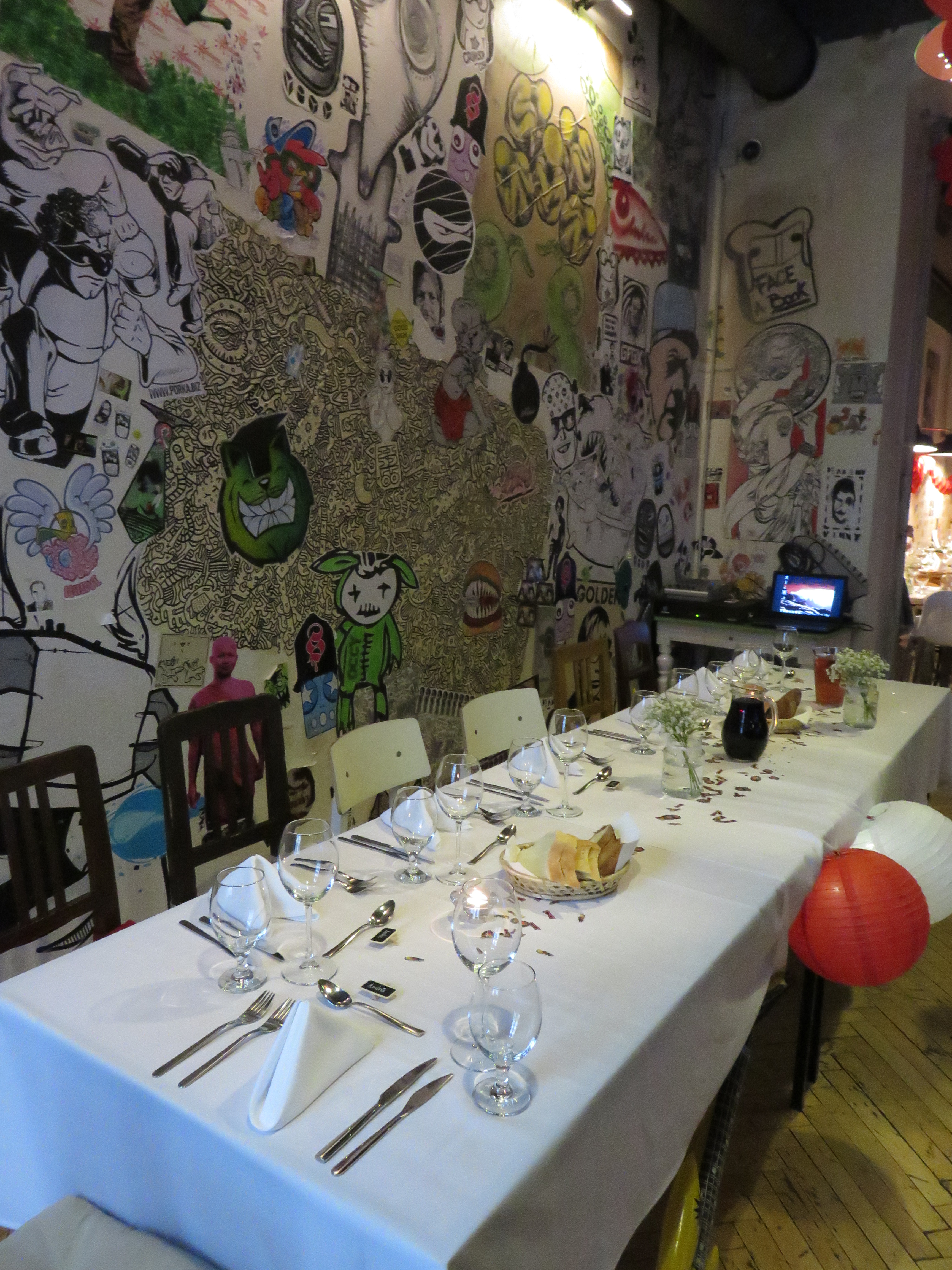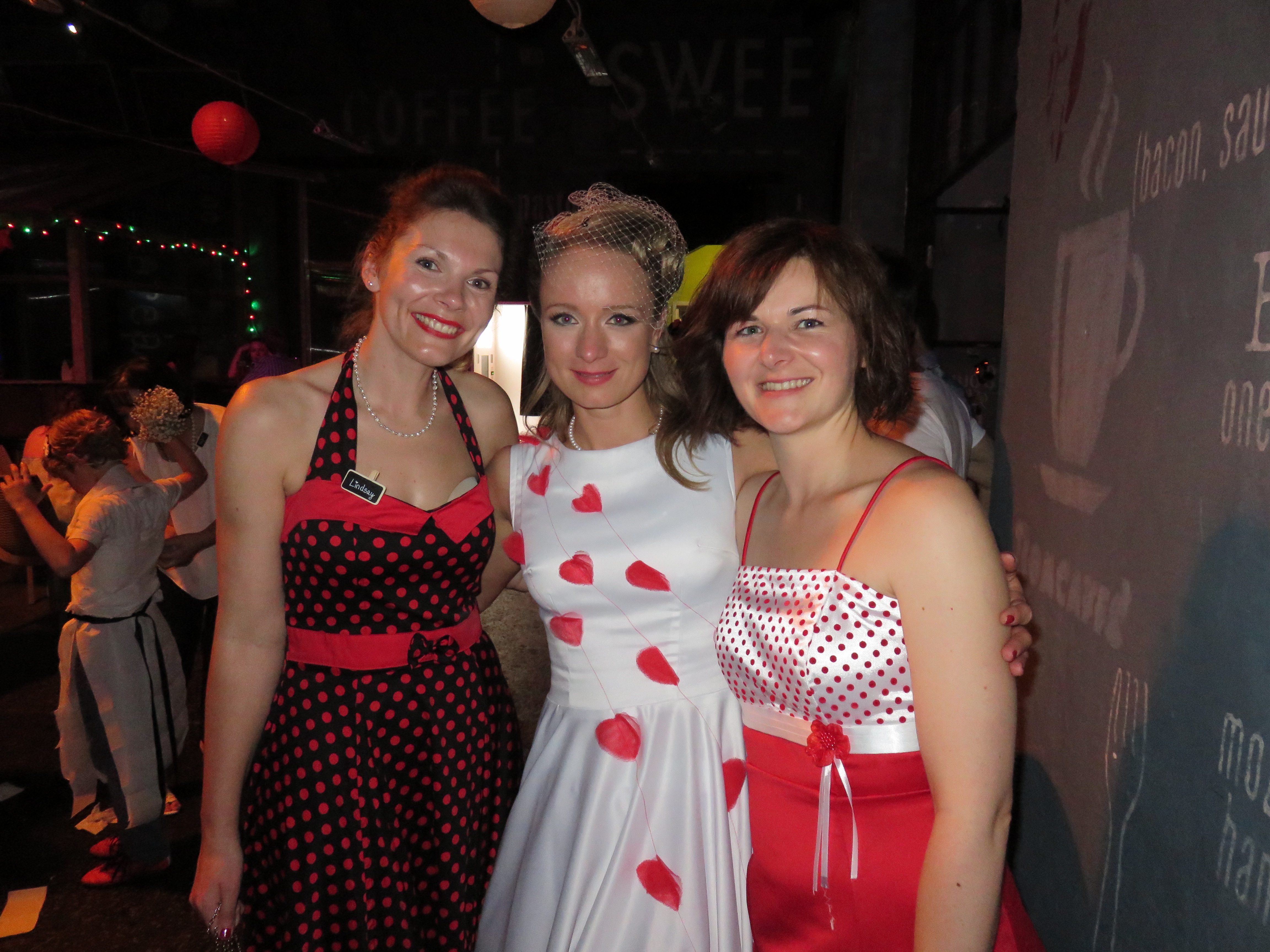 After more meandering, we looped back in the direction of our apartment to get ready for the wedding, which had a 1950s theme. Huge thanks to my lovely neighbours who lent me a super 1950s dress. We had great fun getting ready and set off for the venue which was a 2 minute walk round the corner in a former school called Iskola.