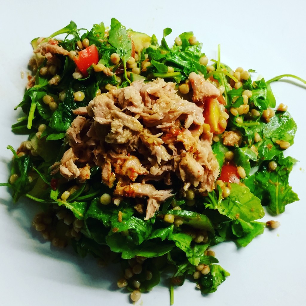 The acidity cuts the fishiness, and the lettuce bulks it up while keeping carbs low, if that’s the goal. If you really want to take it up a bit, sprinkle toasted sesame seeds for crunch. Packed full of protein, and about as quick as you can get.